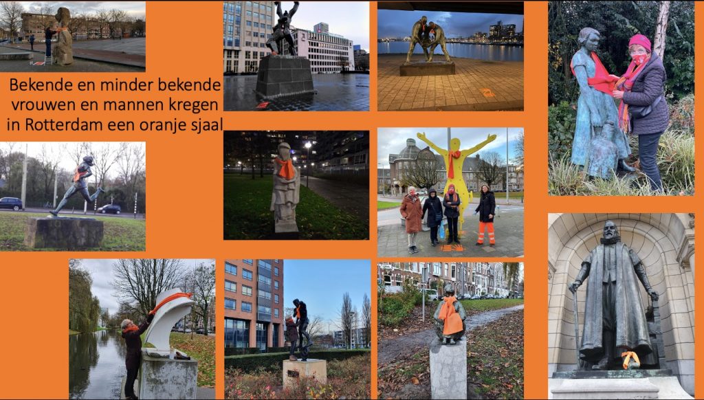 En natuurlijk kan ik hier de uitzending van “M” in prime time niet onvermeld laten. Het statement van prinses Eloise die een selfie postte met een OtW stophandje en prinses Amalia die bijzondere sieraden droeg op haar verjaardag. En evenmin de verwijzing naar de oranje gebouwen en de oproep van MP Rutte aan het eind van de persconferentie op 26 november. En wat de denken van al die vrouwen die zich op tv en bij bijeenkomsten uitspraken over hetgeen hen is overkomen. Zou de campagne van de afgelopen jaren een beetje bijgedragen hebben aan het feit dat ze nu naar buiten durven komen?