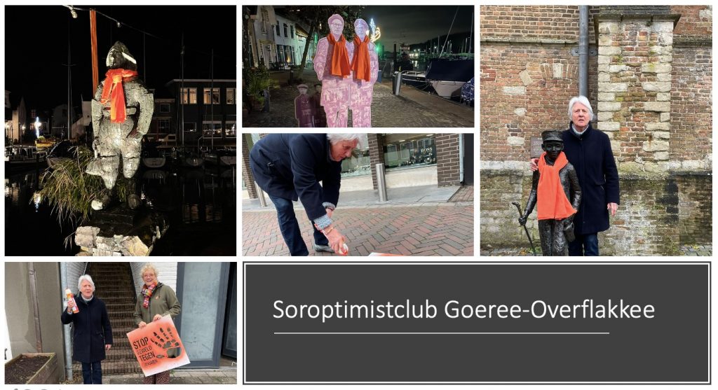 Dit alles was natuurlijk niet gelukt zonder de enorme inzet van de clubs en de samenwerking met UN Women en Zonta, landelijk en lokaal. De fantastische aftrap in Breda met aangrijpende verhalen van ervaringsdeskundigen, zang van Marloes van Ommen, het SPOKEN WORD van Kevin Groen en de opening van de tentoonstelling HEAR ME NOW konden gelukkig, enigszins aangepast, doorgaan. Clubleden spraken mensen aan op straat, deelden OtW-bierviltjes uit, spraken gemeenteraden toe, organiseerden bijeenkomsten, schakelden stadsdichters in, onthulden een OtW-social sofa, spoten stophandjes op de stoep, voorzagen beelden van oranje sjaals, posten statements op social media, zorgden voor berichten in kranten, gesprekken op lokale radio/tv en ontwikkelden een lespakket voor middelbare scholen.