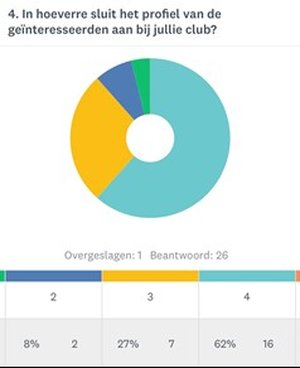 Van de clubs die hebben meegedaan, hebben er 27 clubs de evaluatie ingevuld en feedback gegeven. Van hen gaf 62 procent aan dat het profiel van aanwezigen goed aansloot bij de club en 27 procent gaf hiervoor een voldoende.