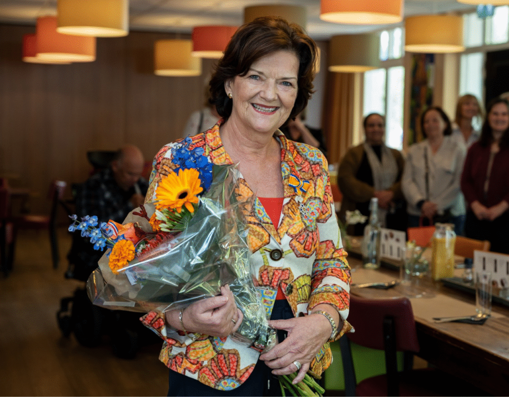 In wijkontmoetingscentrum De Grote Aak – omringd door collega-vrijwilligers, vertegenwoordigers van haar organisaties en haar man Ton – werd zij verrast met het lintje.