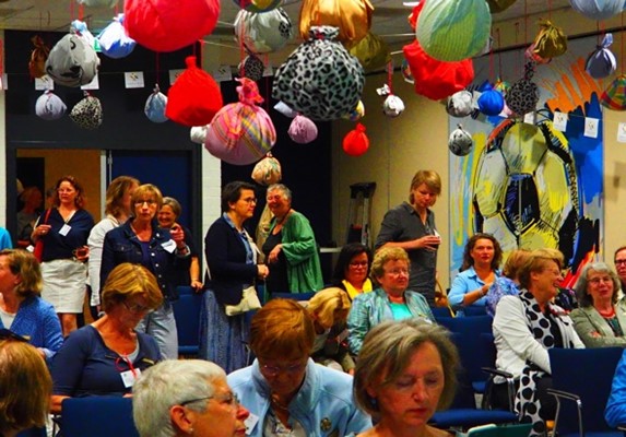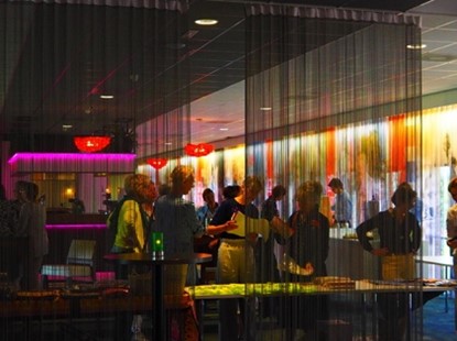 De feestelijke en duurzame aankleding knipoogde naar onze textielachtergrond, net zoals een van de workshops dat deed.