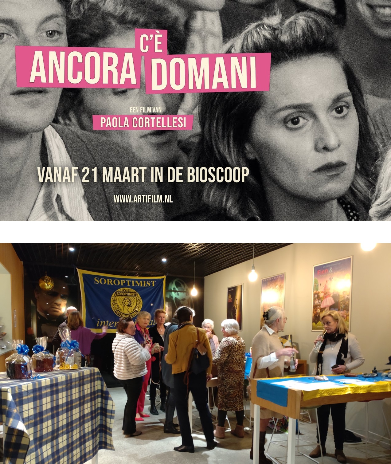 Cinema Floralis vertoonde op 8 maart de film C’è ancora domani (Er is nog een morgen) met aandacht voor het Soroptimisme en Internationale Vrouwendag. De opbrengst is voor vrouwenopvang Rosa Manus in Leiden. Als voorprogramma een dans van dansgroep MLX op het lied ‘De Baas’ over baas zijn over je eigen lichaam.