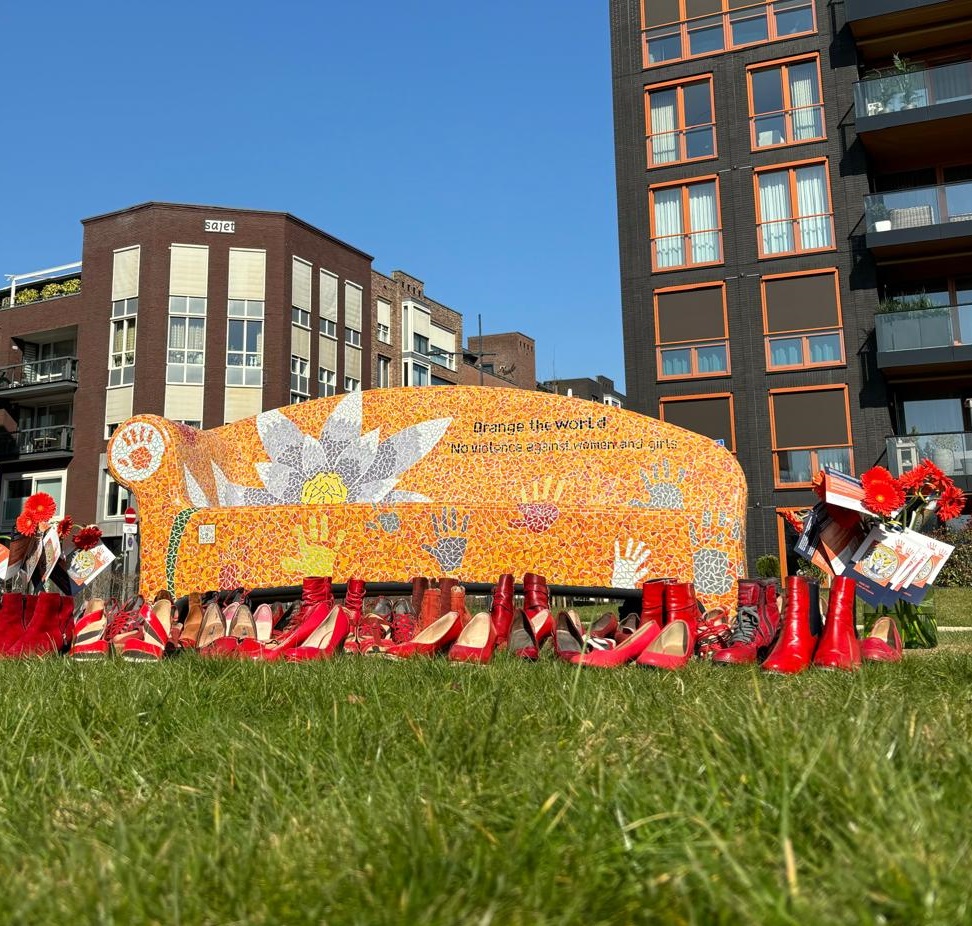 Vrijdagmorgen 8 maart onthulde de burgemeester onze 2e social sofa met de boodschap Stop Geweld Tegen Vrouwen, in het centrum van Veenendaal. Vorig jaar is de 1e bank in Rhenen gerealiseerd. 43 paar rood geverfde schoenen symboliseren het aantal gevallen van femicide in Nederland per jaar. Lees meer