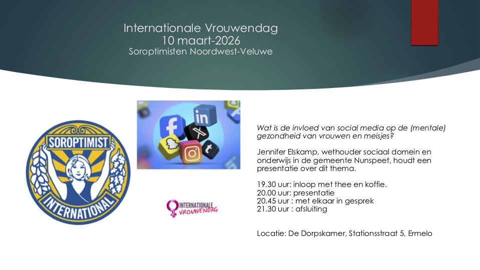 Op dinsdag 10 maart willen we als club Noordwest Veluwe stilstaan bij de Internationale Vrouwendag.