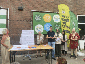 Hier vertelde iemand iets over de groene daken van Rotterdam. En toonde ons verschillende groene daken.