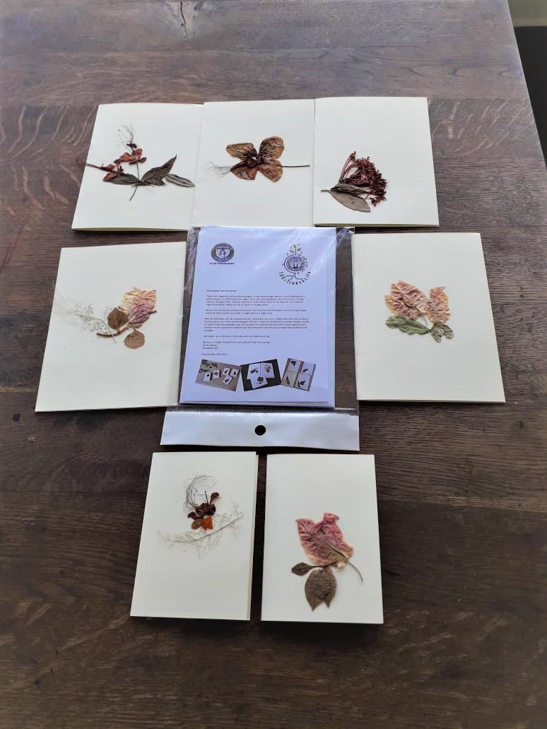 Samen met een groep enthousiaste Sorren van Club Paramarib hebben wij van dit gedroogd materiaal deze kaarten gemaakt. In eigen tijd en in eigen huis.