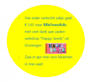 Club Groningen-West verkoopt de zakjes met – onbespoten en 100 % natuurlijke – zaden van de éénjarige gele ganzenbloem en de blauwe korenbloem.