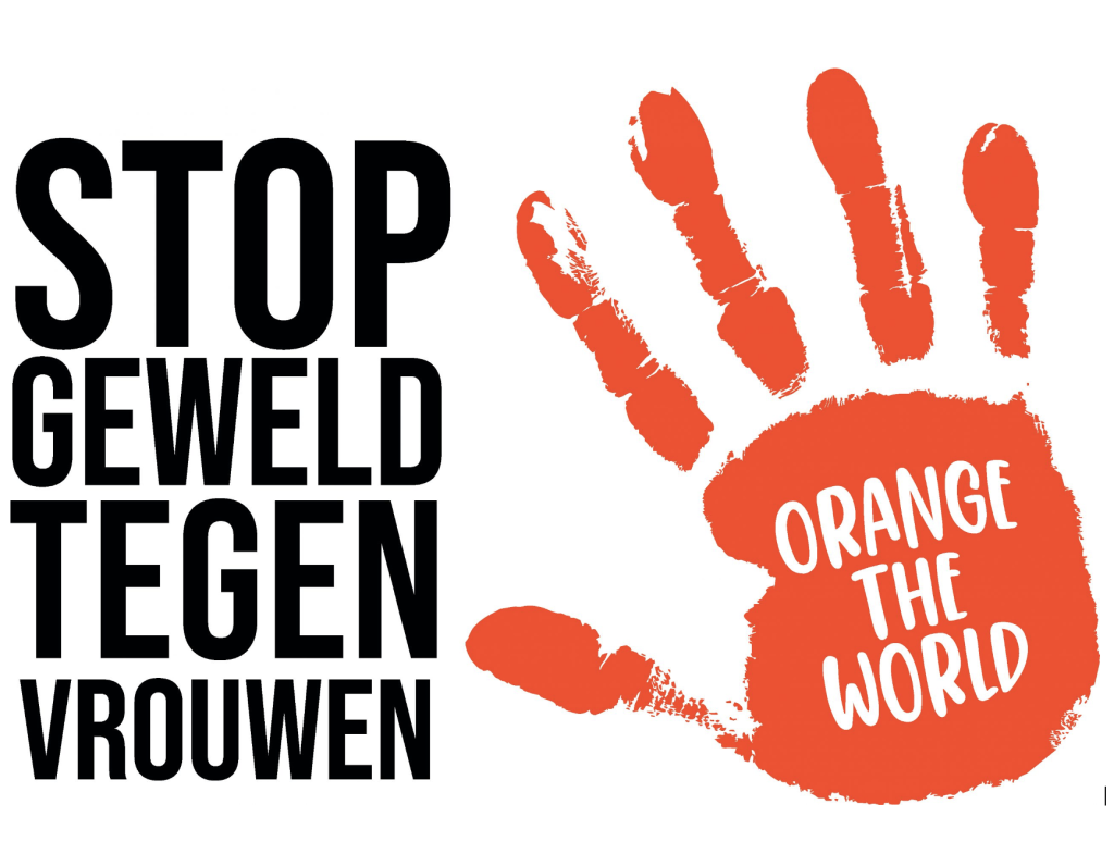 De kleur oranje staat symbool voor een optimistische toekomst, waarin geen geweld is tegen vrouwen en meisjes.