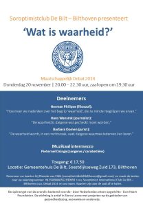 Soroptimistclub De Bilt-Bilthoven steunde de Lion Heart Foundation in 2014 met de opbrengst van het maatschappelijk debat ‘Wat is waarheid’.