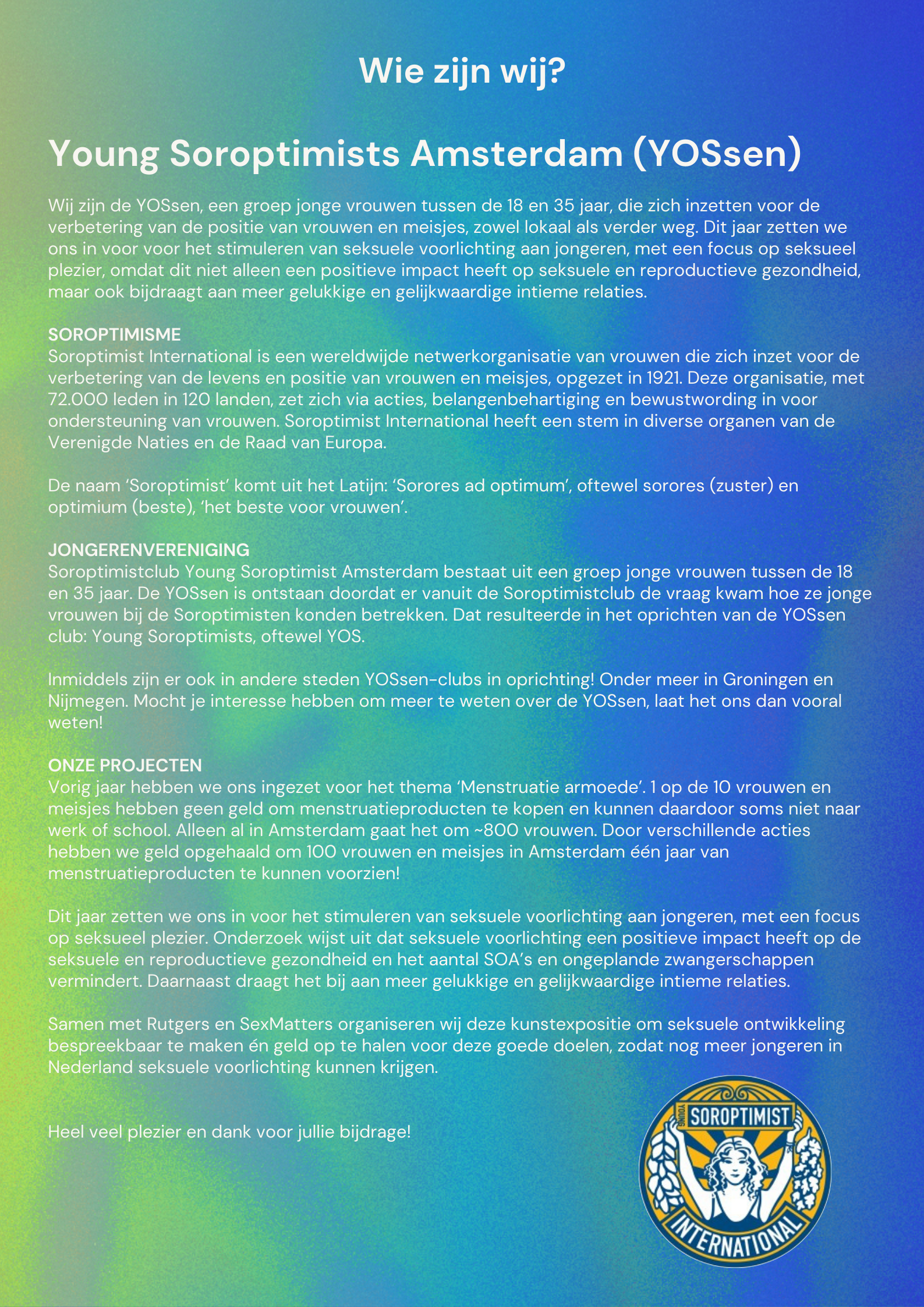 - Het is een onderwerp dat (binnen het Soroptimisme) weinig aandacht krijgt, maar wel heel relevant is. Zeker vergeleken met de nog verouderde en negatieve insteek van de huidige voorlichting die juist ongelijkheden in stand houdt.