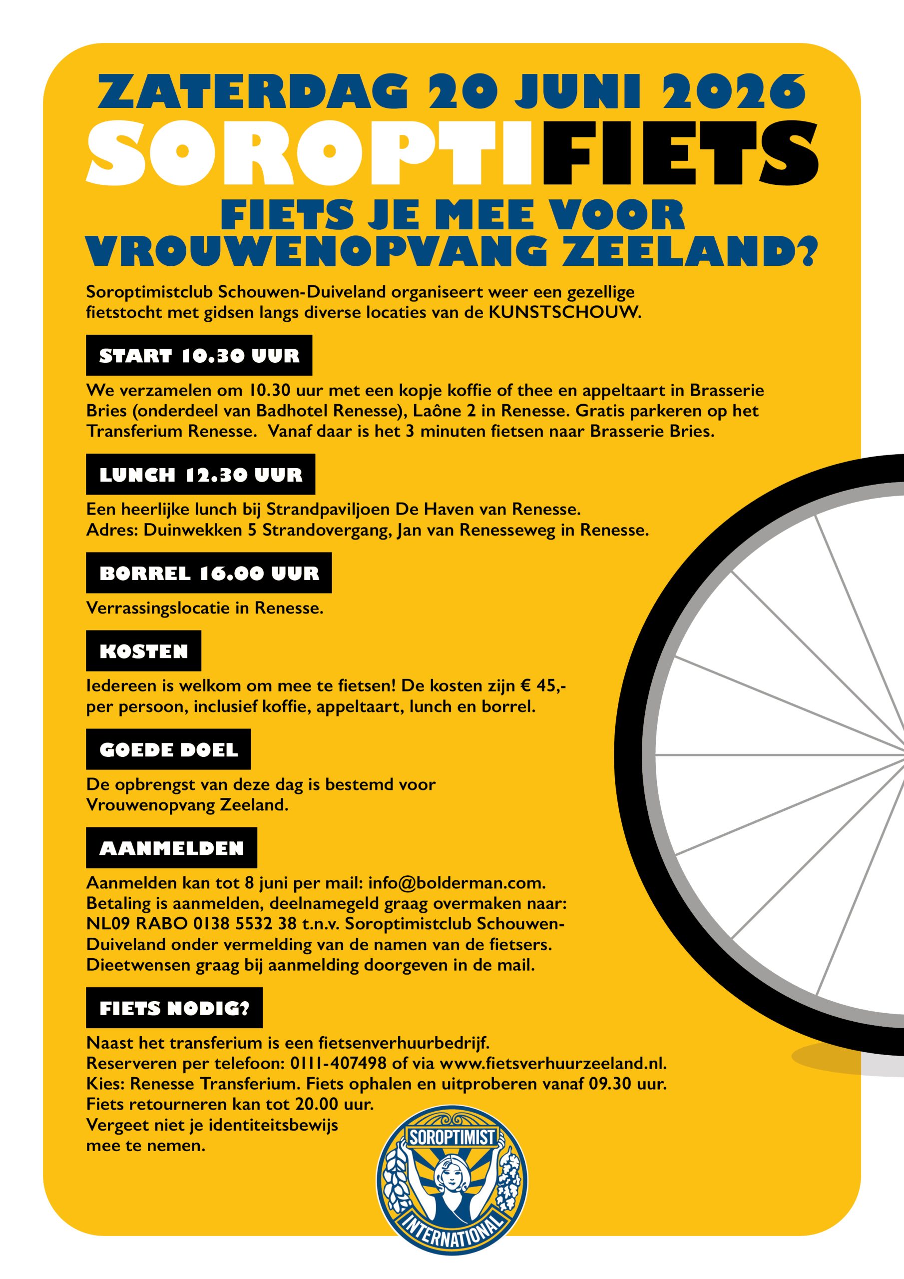 Nieuws All Categories Algemeen (4) Film Festival voor Kinderen (0) Friendshiplink (1) Hart van Drenthe (0) Internationale Vrouwendag (3) Orange the World (3) Soroptifiets (4) Vrouwenopvang Zeeland (0) Sorteren op… Naam Datum Soroptipuzzel, ga jij de uitdaging aan 23 mei? Bekijken Save the date: 20 juni Soroptifiets Bekijken Vrouw op de voorgrond award uitgereikt aan Marieke Liem Bekijken Orange the World 12 december jaarlijkse filmavond fiZi Bekijken Orange the World UITNODIGING: kom naar De Mythe en help geweld tegen vrouwen te bestrijden! Bekijken Soroptifiets Soroptimisten brengen auto vol menstruatieproducten naar Voedselbank Bekijken Algemeen Taal begint met een verhaal: lokale actie maakt voorlezen nog leuker Bekijken Algemeen Zes nieuwe leden voor Soroptimistclub Schouwen-Duiveland Bekijken Soroptifiets Trap mee langs kunst en gezelligheid – inschrijving Soroptifiets 2025 nu geopend! Bekijken Internationale Vrouwendag Van strijd tot toekomst: Suzanna Jansen over vrouwenrechten en gelijkheid Bekijken Algemeen Kiwanis pubquiz prijs voor ‘Gemaakt voor jou’ Bekijken Internationale Vrouwendag Schrijversontmoeting Suzanna Jansen Bekijken Soroptifiets Voedselbos Schouwen ontvangt donatie van 350 euro Bekijken Algemeen Geld voor Stichting Vlinderduin Bekijken Friendshiplink Viering Friendshiplink met ‘De zes rozen’ in Dreischor Bekijken Soroptifiets Soroptimistclub Schouwen-Duiveland schenkt fruitbomen aan Voedselbos Schouwen Bekijken Internationale Vrouwendag Eén Wereld Duizend Vrouwen Bekijken Orange the World Samen sterk tegen geweld: Orange the World campagne op Schouwen-Duiveland Bekijken