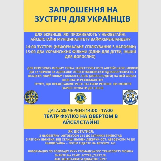 We wilden graag een gezellige middag met een hapje en drankje en een film realiseren voor alle Oekraïense vluchtelingen in de regio. Ook onder het motto: #nietsdoenisgeenoptie.
