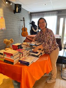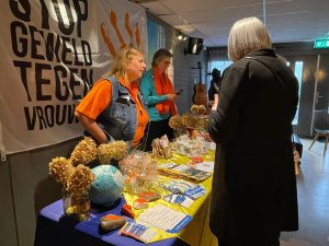 We verkochten vaasjes, OtW-stenen, gevulde kopjes, boeken en het Soroptimisme. Ook kon er informatie over 100xTrees4Life en Orange the World worden verkregen.