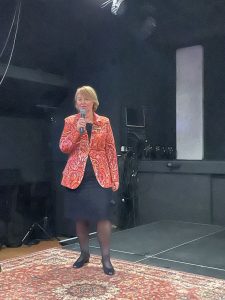De zaal met Resie op het podium die de opening doet.