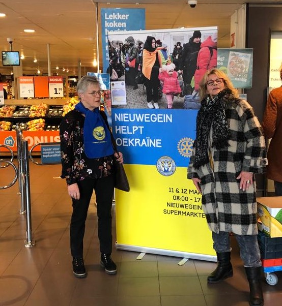 Op vrijdag 11 en zaterdag 12 maart hebben leden in een aantal supermarkten in Nieuwegein goederen ingezameld voor hulp aan gevluchte Oekraïners. Deze actie was een samenwerkingsverband met Lions Nieuwegein en Rotary Nieuwegein. Er zijn veel containers gevuld en de bananendozen kwamen goed van pas. Eén supermarkt kon zaterdag niet meer meedoen, omdat ze door de voorraad heen waren ! Geweldig toch !