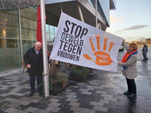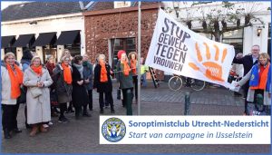 Op 25 november 2022 hebben is eerst in de gemeente IJsselstein, bij het oude gemeentehuis de OtW-vlag in top gehesen door presidente van club Utrecht-Nedersticht Resie Meisters en wethouder Edwin Tas (met bijpassende schoenen!), onder toeziend oog van ambtenaren, clubleden en SenSoren (senior Soroptimisten). De wethouder kreeg het OtW-speldje op zijn revers opgespeld, zodat hij ook na deze dag laat zien dat hij de campagne steunt.