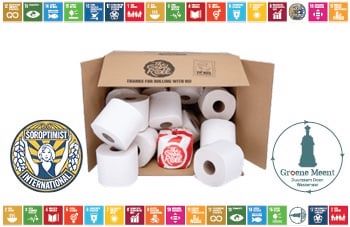 Met de actie ondersteunden we in “een veeg” de Global Goals ‘leven op aarde’ (15), ‘gendergelijkheid (5)’ ‘schoon water en sanitair (6)’ en ‘partnerschap (17)’. Want het wc-papier is 100% gerecycled en in Europa gefabriceerd. Er worden hiervoor dus geen bomen gekapt.