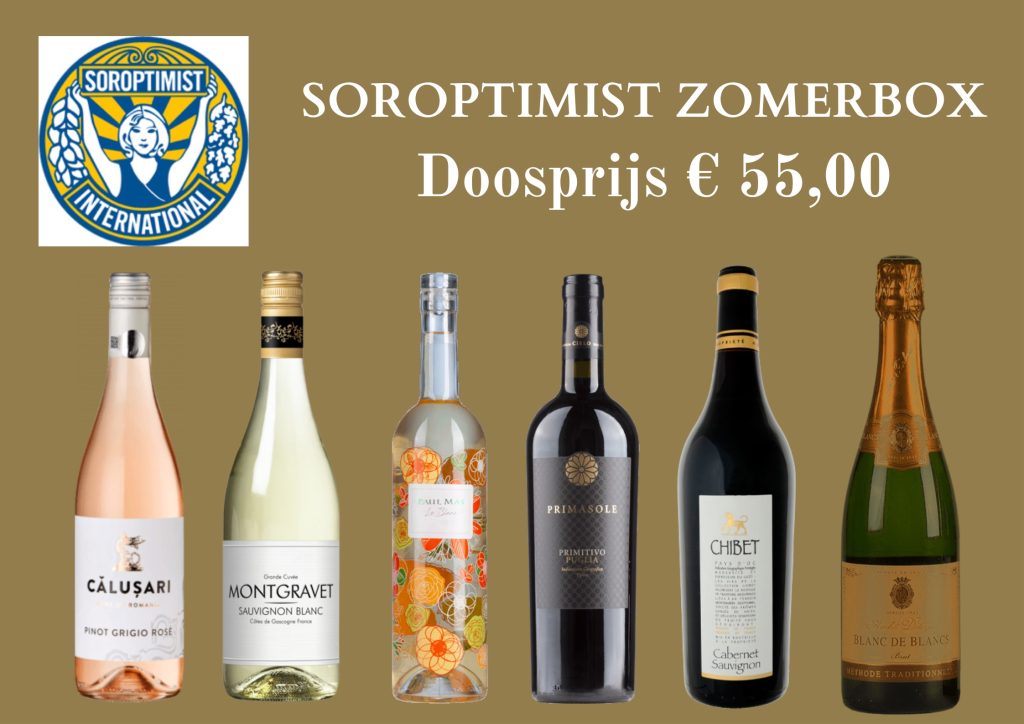 Na het succes van onze wijnbox rond Kerst 2021 introduceren we nu de zomerbox, bestaande uit 2 flessen witte wijn, 2 flessen rode wijn, 1 fles rosé en 1 fles bubbelwijn. Kortom wijnen met een zomers tintje. Tijdens de wijnproeverij vertelt sommelier Heleen van Chateau Sonnenberg je alles over de karakter van de wijnen en uiteraard kan je de wijnen ook proeven en ter plekke kopen of bestellen. Per verkochte doos (6 flessen) gaat € 10,00 naar onze Afghanistan actie. Aanmelden kan via soroptimistclubwassenaar@gmail.com. Kosten: € 10,00 p/p (inclusief parkeren).