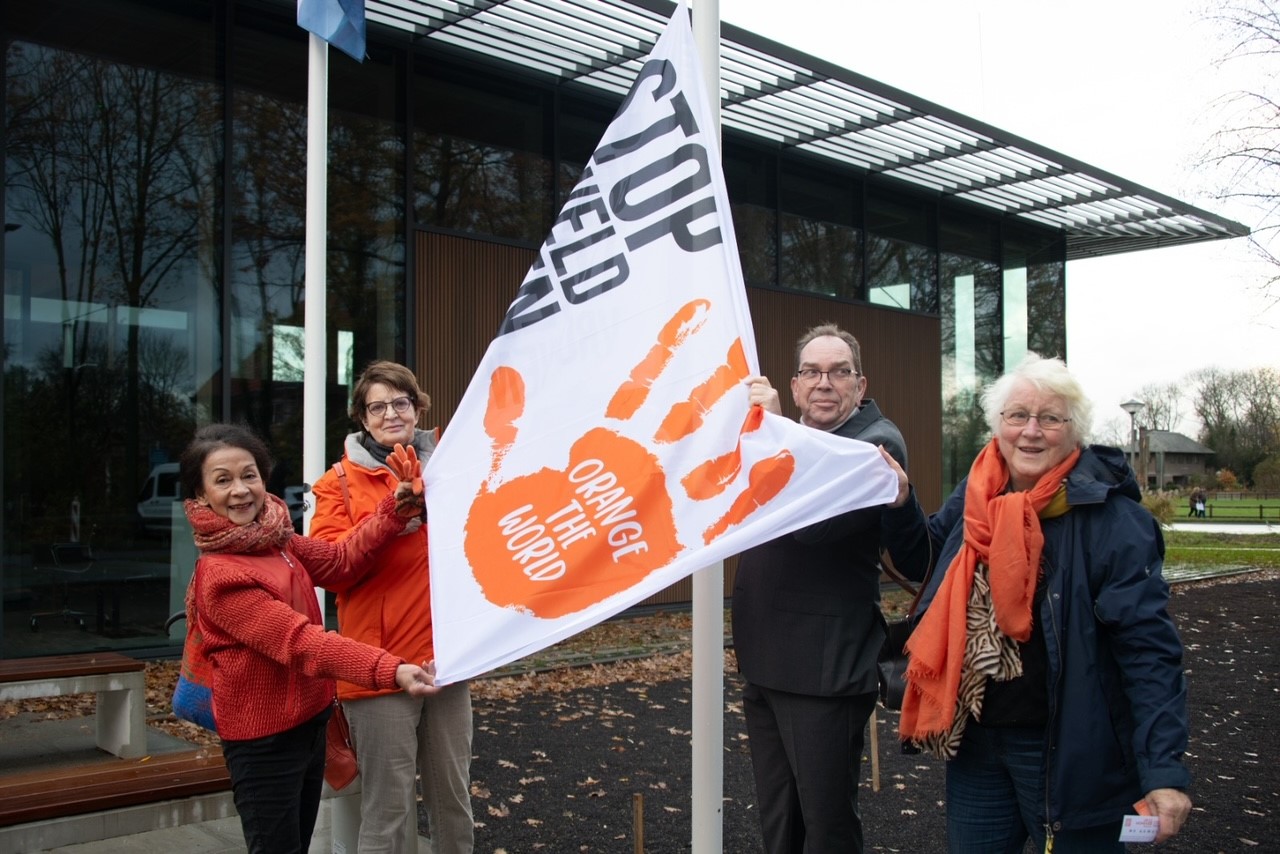 Tijdens de 16 dagen campagne wappert in de dorpshuizen van de 26 kernen van de gemeente de speciale Orange the World-vlag en nodigen kletspotten uit tot gesprek. Het gemeentehuis in Geldermalsen kleurt oranje.