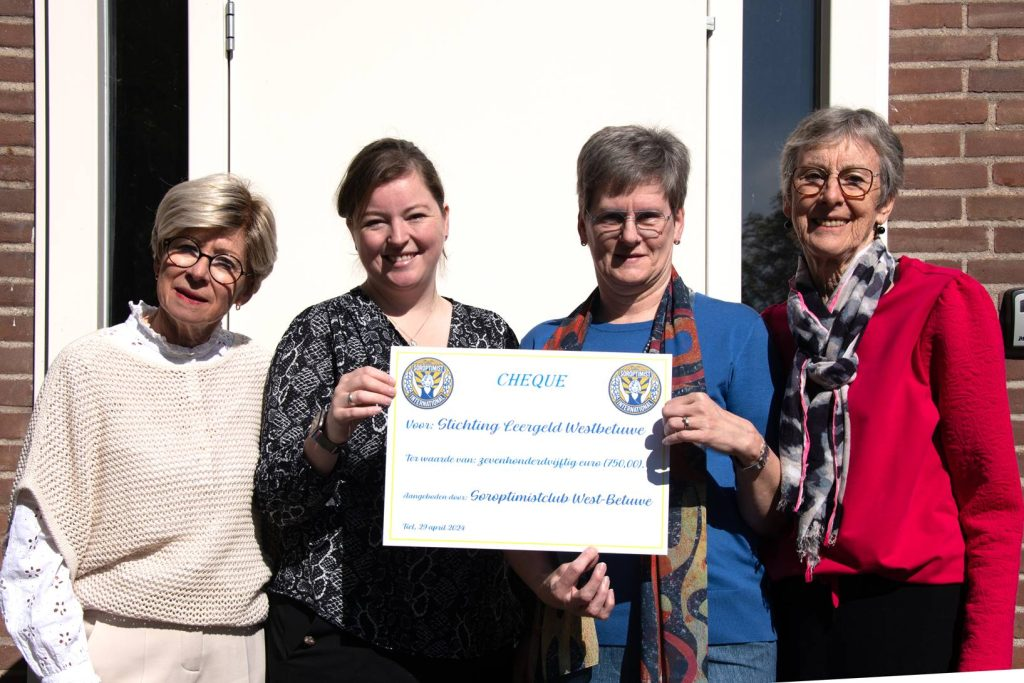 Op 29 april 2024 overhandigt Lia Vlemmings penningmeester van de soroptimisten club West-Betuwe aan Anne van Opijnen van Stichting Leergeld Westbetuwe een bedrag van 750 euro in het bijzijn van soroptimisten Reina Rijzenga en Miek Hoogbergen. Zij zijn beide vrijwilligers van Stichting Leergeld West-Betuwe. Lees hier het artikel op hun website donatie-soroptimisten