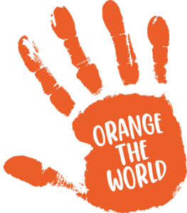 De slogan hoort bij de wereldwijde campagne Orange the World, die zich richt op het bestrijden van geweld tegen vrouwen en meisjes.