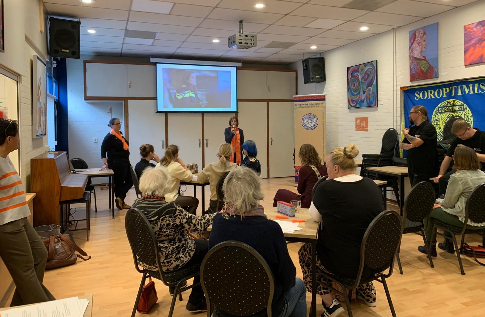 In aanloop naar de wereldwijde actie Orange the World heeft Soroptimist Club Zoetermeer op zaterdag 2 november een interactieve middag met weerbaarheidstraining georganiseerd.