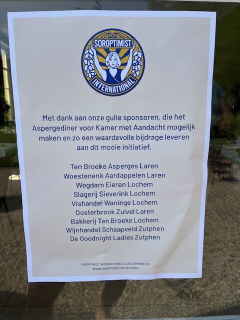 12 juni organiseren wij, Club Zutphen, een aspergediner voor ons goede doel, Kamers met Aandacht. Dit gaan we doen op een mooie locatie, namelijk in de Oranjerie van Huis