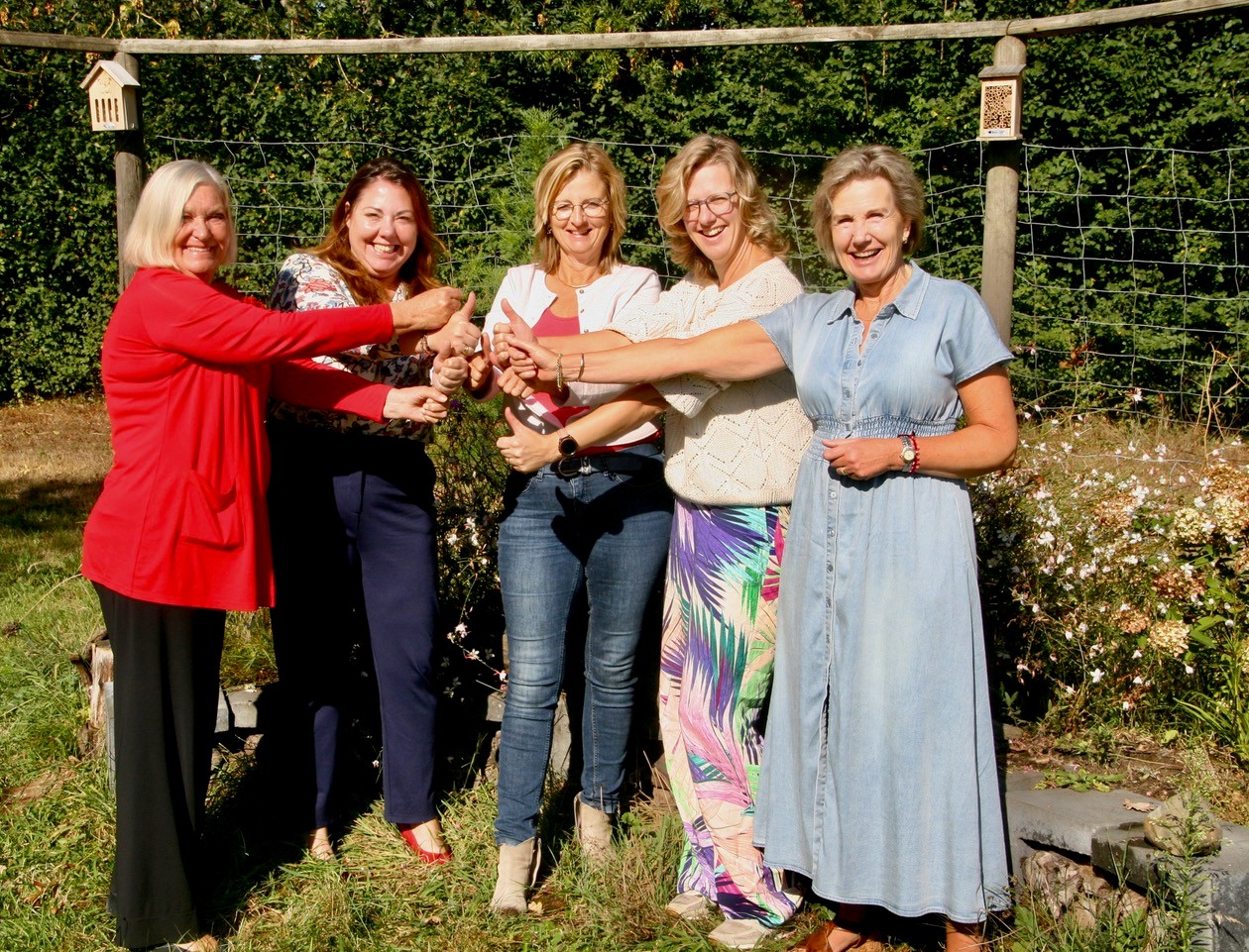 vlnr: Margriet Roukema (Isalania), Elisabeth Ekker en Nel Hagen (Zwolle), Janine Zoer (SHE) en Titia Claassen (Raalte) 14-11-2025